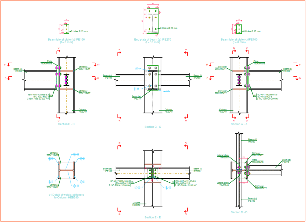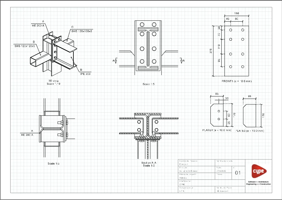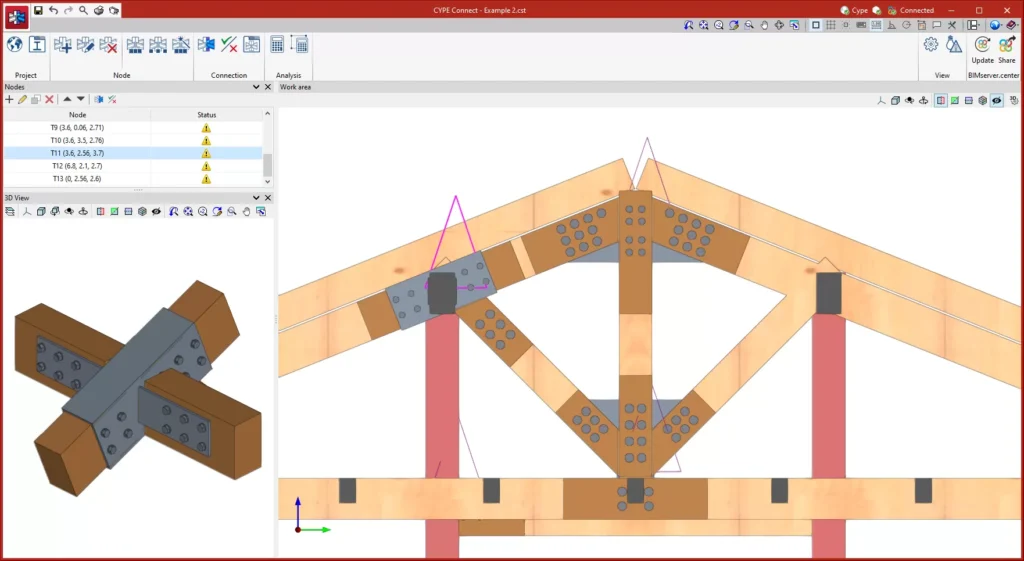 Modelimi, Analiza dhe Informacioni Grafik i Lidhjeve: CYPE Connect ofron mundësinë për të analizuar lidhjet ndërmjet elementeve strukturale të bëra nga çeliku, druri, ose kombinime të të dyjave në të njëjtën lidhje. Analiza përfshin gjithashtu mundësinë e modelimit të elementeve të ankorimit të fiksuar në kolonat e betonit.