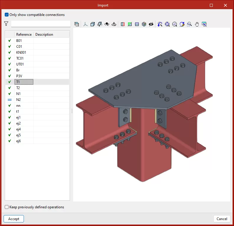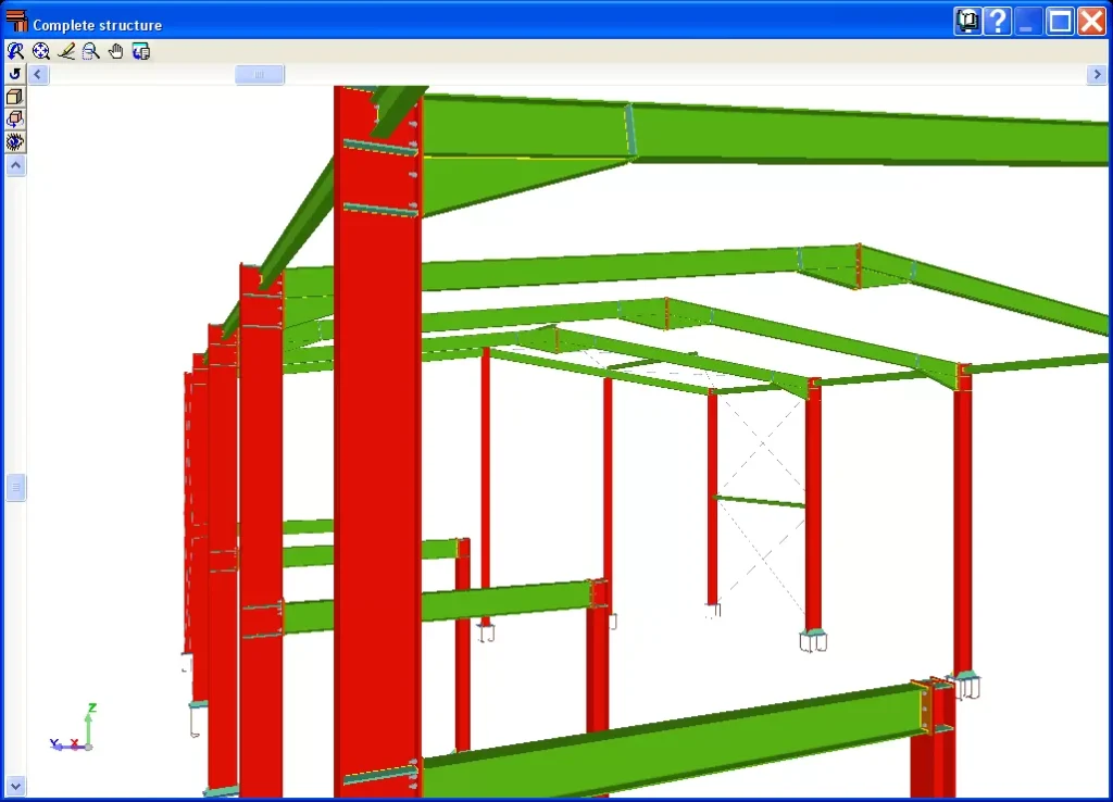 Modelimi i Strukturës dhe Lidhjeve: Programi përfshin mjete për hyrjen dhe modelimin e seksioneve, pllakave, bullonave, ankorëve dhe saldimeve. Gjithashtu ofron një panel për modelimin dhe analizën e lidhjeve, duke përdorur një listë operacionesh që përdoren në mënyrë sekuenciale për të përcaktuar elementet dhe gjeometrinë e lidhjes.
