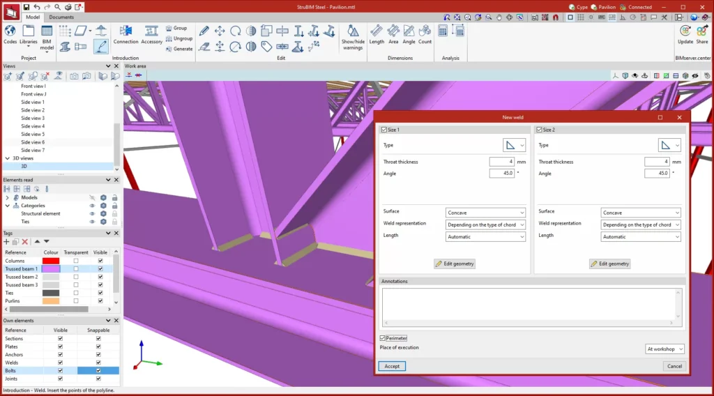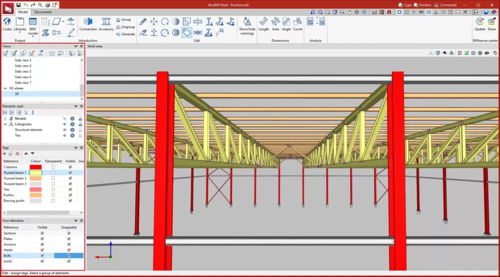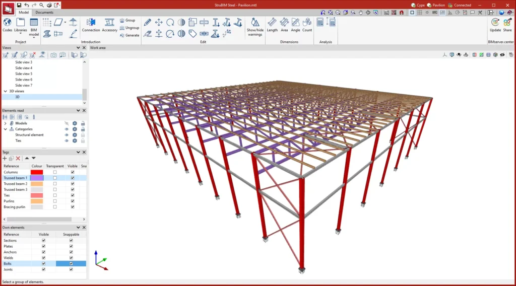 Hyrje: StruBIM Steel është një program i dedikuar për detajimin e strukturave të çelikut. Ky program përfshin mjete të ndryshme për modelimin ose importimin e një modeli BIM dhe lejon përdoruesit të përcaktojnë me saktësi të gjithë elementët e nevojshëm për detajimin, si seksionet, pllakat, bullonat, saldimet dhe ankorat. Si rezultat, aplikacioni ofron skedarë prodhimi në formatin DSTV.
