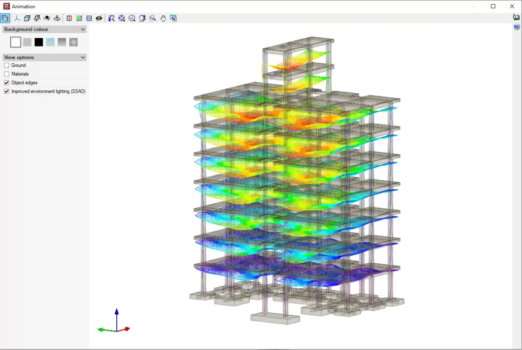 - Analizat: CYPE 3D kryen analiza sismike dhe analiza për ngarkesat e erës, duke marrë parasysh efektet e rendit të dytë (P-delta).