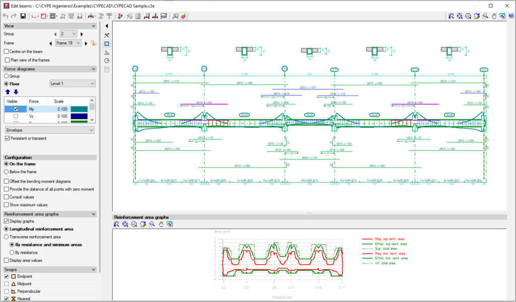 CYPECAD gjithashtu ofron analizë të detajuar të forcës për strukturat e sheshta dhe përdor metodat e matricës së rrigiditetit për të kryer analiza hapësinore 3D. Përveç kësaj, software mbështet projektimin e shkallëve dhe sistemeve të themelit, duke përfshirë verifikimin e rezistencës ndaj prerjes dhe shpërthimit për shtresat dhe themelin.